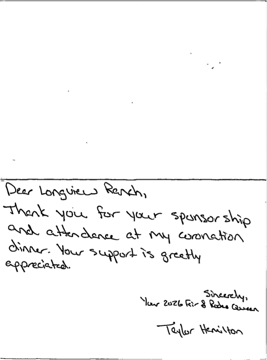Longview Ranch enjoys being a good neighbor in our community and is honored to support many great causes, nonprofit organizations and always, good people doing good things. In addition to practicing responsible, sustainable land-use policies, the ranch especially focuses on support for seniors, kids and education, and people who need help with food and healthcare. We have supported the Carrie Young Memorial in their outstanding efforts to help seniors in Grant County with holiday gifts, food and everyday living essentials. We believe in our youth and support them with scholarships and sponsorships. Longview Ranch believes that part of our mission is to give back with thoughtful support, and to be a good neighbor.